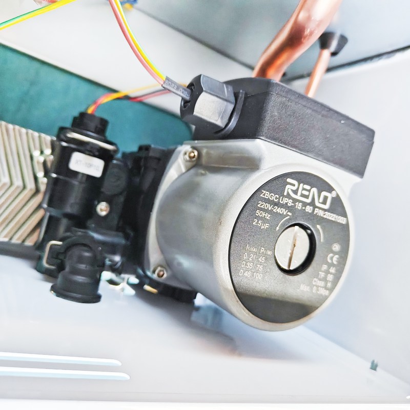 De pompen worden geassembleerd in de hydraulische module van de gasmuur gehangen boiler voor verwarmend en koelsysteem. Een geïntegreerd lucht het luchten systeem van de pomp kan deponeert automatisch de lucht uit het water.